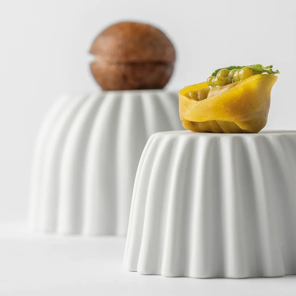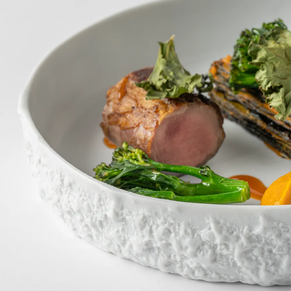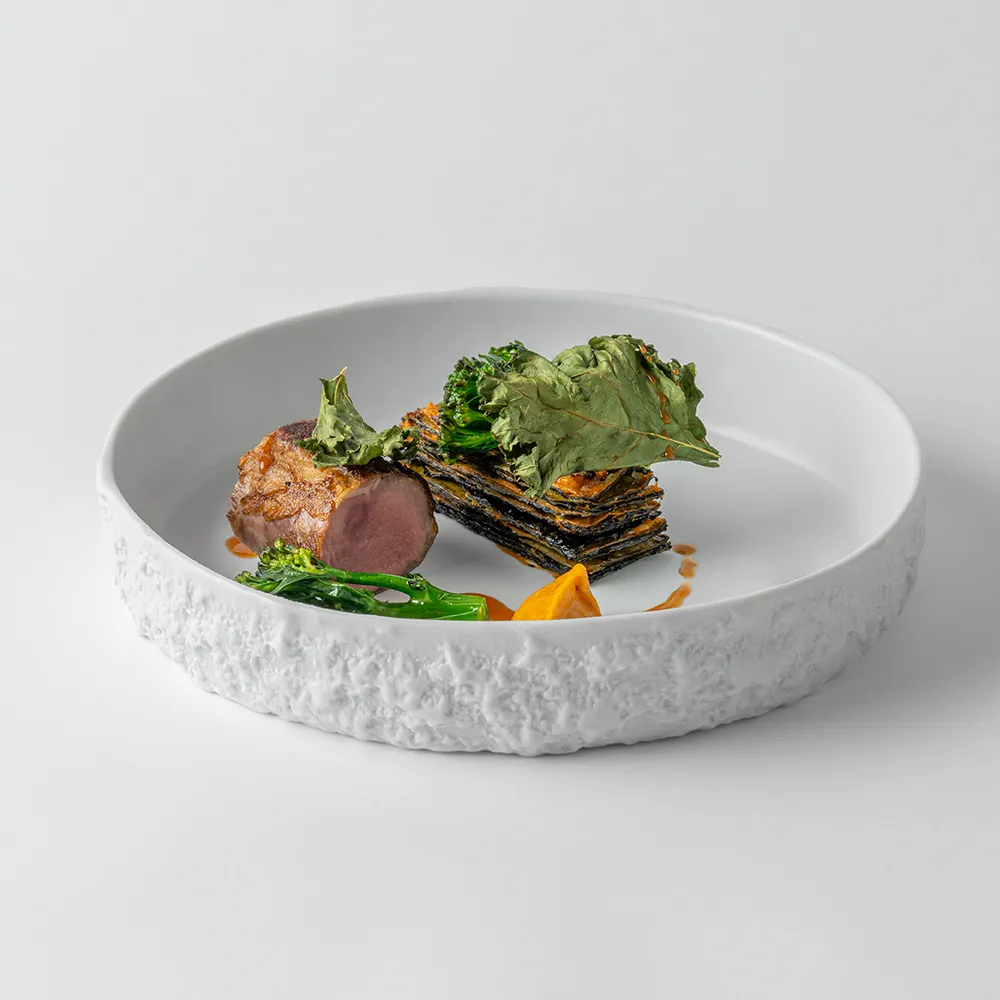The porcelain is handmade using the highest grade materials, such as Limoges kaolin. This type of porcelain is appreciated worldwide for its quality, fineness, and translucence, often featuring intricate, hand-modeled designs.